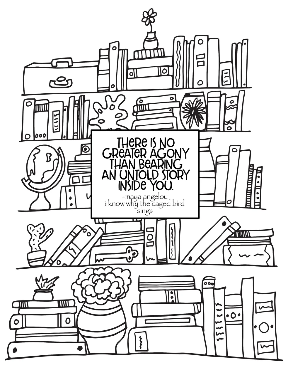 Why The Caged Bird Sings Quote Free Bookshelf Coloring Page Stevie Doodles